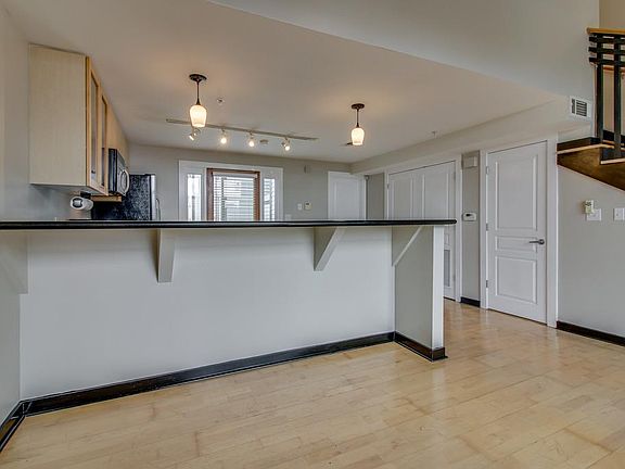 TRUE LOFT LAYOUT ; GRANITE TOPS ; SS APPLIANCES ; BAR SEATING FOR 3 ; BAMBOO FLOORS ; TILE IN BA'S ; NO CARPET ; HALF BA ON MAIN ; BR & FULL BATH UP ; 1 ASSIGNED PARKING SPACE: NUMBER 46 IN ACCESS CONTROLLED GARAGE.