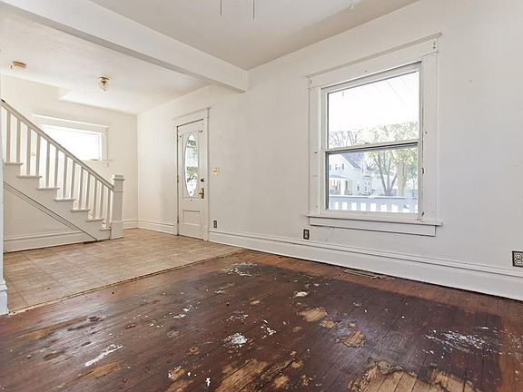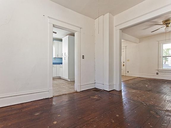 This is a two story home with three bedrooms and one bathroom. There is a formal dining room on the main floor that opens into a living room to one side and the large kitchen on the other. The appliances stay and all the mechanicals are new within the last 5-10 years. Upstairs you will find the bedrooms, bathroom and a large storage closet. Out back there is a fenced in yard with a two stall detached garage. With a little paint and flooring, this home could easily be restored to its original charm and character. Sale is as is.