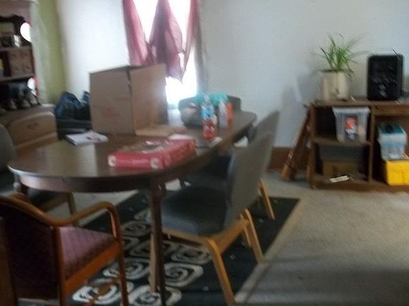 Older home on the hill with most unpainted original trim and some leaded windows. Owner bit off more than he was able to do and needs to take life easier. Kitchen open to dining room. Dining room has beautiful original fireplace insert and built-in mirror above the mantle. Colonades between living and dining rooms. Home needs painted but siding appears good. Most windows have aluminum storms. Newer Rudd furnace. Outside basement entrance only.