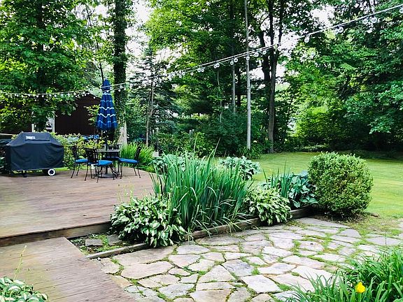 2 Bedroom, 1 bath ranch; Nice family room; Den/Office/sitting room with working fireplace; Large, private, fenced in back yard with deck; Two car garage with two electric door openers; Remodeled kitchen, bath, and den; Granite countertops in kitchen; Hardwood floors throughout; Brick exterior; Chagrin Falls Schools; walk to Chagrin Falls downtown.