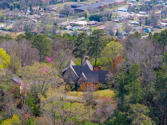 This gorgeous, traditional English stone, custom-built home is on 10 private acres! 4 bedrooms, 4 baths, and 3 fireplaces. Enjoy incredible views from the brick patio surrounded by a variety of established flowering and fruit trees. Primary bedroom and bath on main level. This timeless property features original hardwood floors, arched openings, grand living room with marble fireplace, vaulted ceilings, and large basement for plenty of storage. Upstairs, you will find three large guest bedrooms with connecting baths. The grounds also feature a detached 2 car garage with room and bath above.