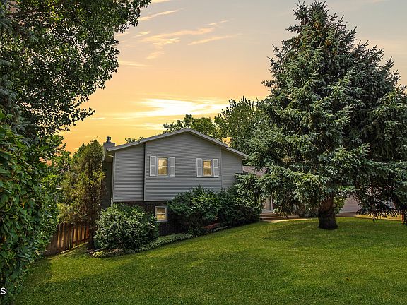 Desirable Multi/Split-Level home in NW Bismarck nestled in a peaceful cul-de-sac with mature trees. This spacious and well-maintained property offers 4 bedrooms, 3 bathrooms, and a triple garage with work benches, storage room, and new garage heater—perfect for hobbyists or extra storage. (You'll love the fenced-in expansive backyard and newer oversized, walk-out deck with maintenance-free rails)! Step inside to a bright, open kitchen featuring durable Corian countertops and ample cabinetry, which flows seamlessly into the dining area and cozy living room. The upper level includes generously sized bedrooms #1, #2, and #3; the primary suite has a sizable walk-in closet and full bathroom. A second full bathroom is also conveniently located on this level. The lower level has a second living room with a fireplace with a walk-out patio access to the backyard. Adjacent are bedroom #4, bathroom #3, and laundry room. Enjoy how the upper-level walk-out deck and lower walk-out patio spaces create an ideal extension for outdoor living, cooking, lounging, and entertaining guests! The lowest level offers a large bonus room perfect for a home gym, office, hobby room, more entertainment space, playroom, or anything else you desire. Nearby is a big open storage room with HVAC inside. This fantastic property has a functional layout, plenty of space to grow, and endless potential for personalization inside and out. This desirable NW Bismarck property is the home you have been waiting for! Don't miss a chance to view it in person; schedule a tour with a Realtor today!