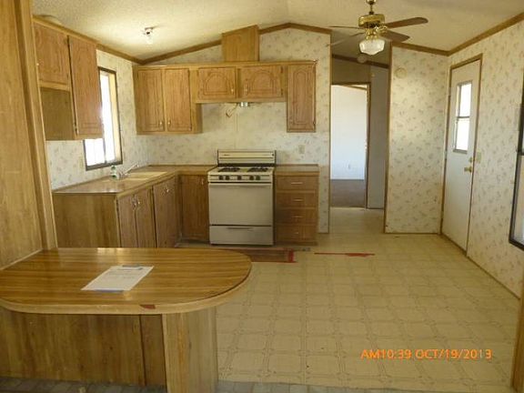 Look at this 2-bedroom 2-bath manufatured home on a permanent foundation. It has patio completly around house with lots of shade, custom built garage with lots of storage.Also there is a fenced area for horse. Property is fully fenced and has RV parking.