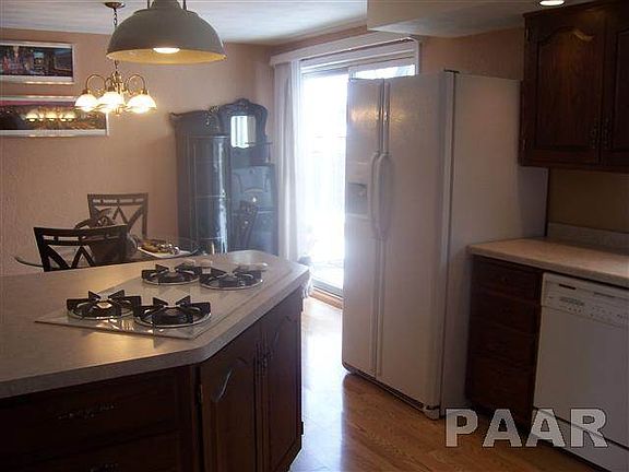 CHARMING 1.5 STORY 3BR. HOME ON PEKIN'S NORTHSIDE. COZY LR W/WB FIREPLACE & GLASS DOOR TO DEN/OFFICE. LARGE EAT-IN KITCHEN W/ABUNDANCE OF CABINETS. OPEN STAIRCASE TO THREE BEDROOMS W/BEAUTIFUL HARDWOOD FLOORS. SHINGLES REPLACED IN 2007. FINISHED FAMILY ROOM IN LOWER LEVEL. ALL APPLIANCES INCLUDING WASHER/DRYER (2012) STAY BUT NOT WARRANTED. MOSTLY FENCED BACKYARD W/ LARGE DECK & SHED. AHS HOME WARRANTY PROVIDED. SQ. FT. PER TAZ. CO PRC