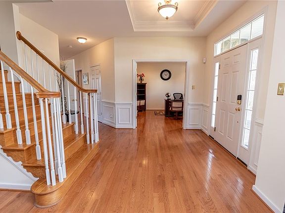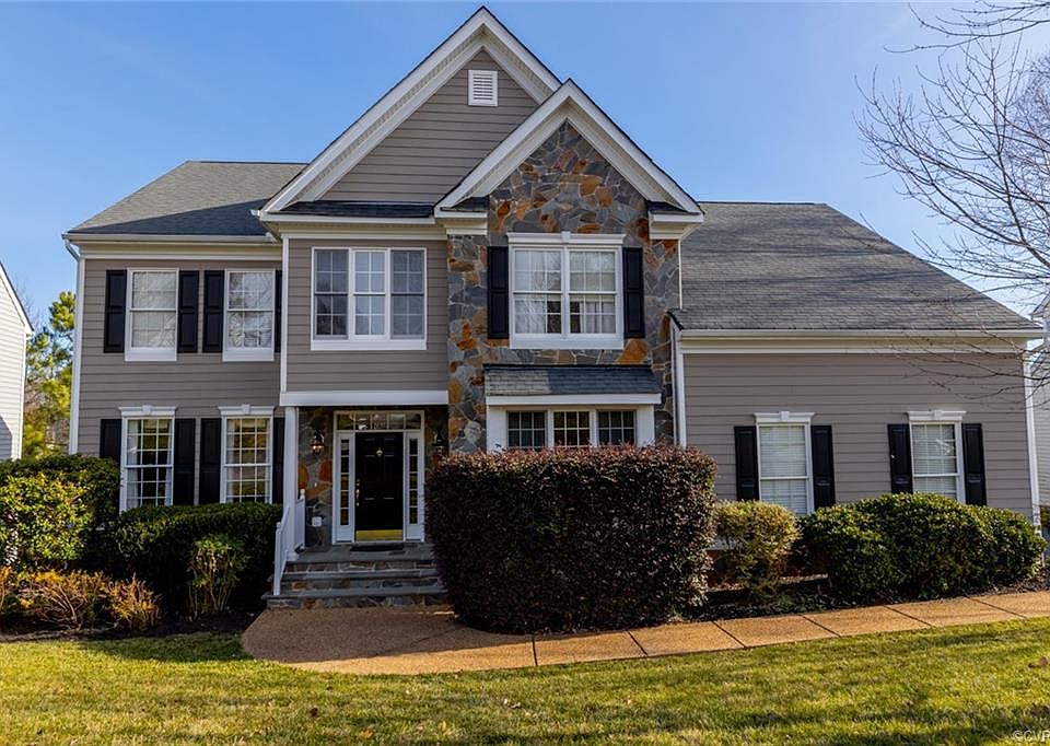 Absolutely stunning, heart of Midlothian, amazing location w/this 5BR 4.5 Bath Colonial style home featuring hardiplank siding & a fully finished WALKOUT BASEMENT. Beautifully maintained home loaded w/ updates & turnkey. Entire first floor with BRAND new hardwood flooring & 9' ceilings. Spacious foyer w/tray ceiling, moldings, & open flow into living room & dining room w/detailed moldings & chandelier. Huge eat in kitchen w/ bench seating, center island, corian counters, double oven, stainless app, recessed lighting, pantry, surround sound, & glass backsplash. Open to your 2 story family room that shows off surround sound & gas FP. Second floor master suite w/ sitting room, dual walk ins, private bath w/tiled floors, jetted tub, dual sinks, & walk in shower. 3 other large kids bedrooms w/walk in closets & wall to wall carpeting plus full bath rounds out 2nd floor. Finished 3rd floor w/two rooms & another full bath. Fully finished walk out basement w/ game room, bar, kitchenette, 5th bedroom, full bath, 4 storage areas, tiled floors, & surround sound. Two carrier heat pumps 2013 & 2016, dual staircases, 2 car garage, neighborhood pool, lake, paths, & award winning schools!