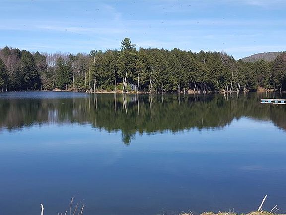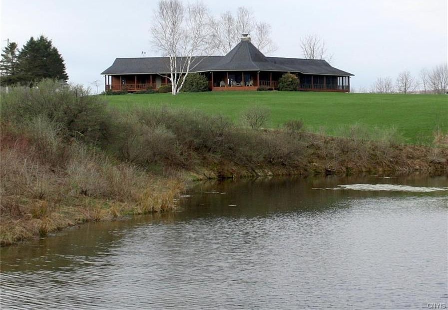 2540 square foot Log home that generates income and qualifies for property tax exemption beyond the basic star program. Close to Cooperstown on 67ac ,views from the massive covered porch, half screened and half open, of the 14ac stocked pond complete with a cabin on the peninsula. The center of the home is octagon with exposed beams in the cathedral ceiling resembling an old wagon wheel along with a double sided fieldstone fireplace that allows you to enjoy it from the Kitchen, living room, dining area and even from the covered porch. There are two wings off the center of the home with 4 bedrooms, one Master suite, and 31/2 baths. Each bedroom had direct access through a set of atrium doors to the covered porch. New AC and propane heat, 2 car attached garage, 30x45 heated pole barn