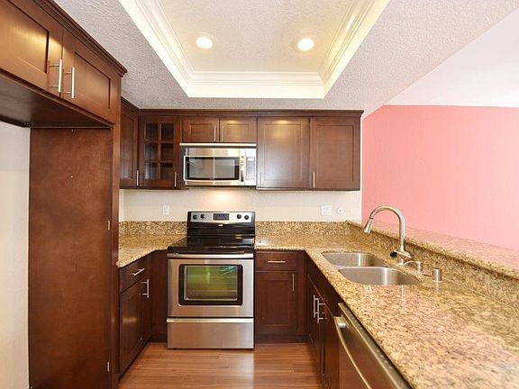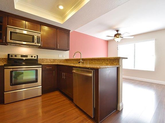 Located in the desirable Community of Malvern Creek. Totally Remodeled Townhome. Everything is bright, clean and sparkling. Freshly painted with neutral colored paint and newer beautiful wood flooring throughout. Granite counter tops and newer stainless appliances in kitchen. Newer faucet, toilet, lighting fixture and tile floor in bathrooms. Peaceful and quiet patio area off of the living room with view. Fireplace in living room with vaulted ceiling and brand new vertical blinds. Separate dining area with new blind. Huge master bedroom with vaulted ceiling, walk-in closet with master bathroom. Two car attached garage with many storage cabinets and shelves throughout. Association pool, spa and clubhouse. Award winning School district. Conveniently close to shopping mall, restaurants, public transportation, parks and great schools. Absolutely perfect move-in condition!