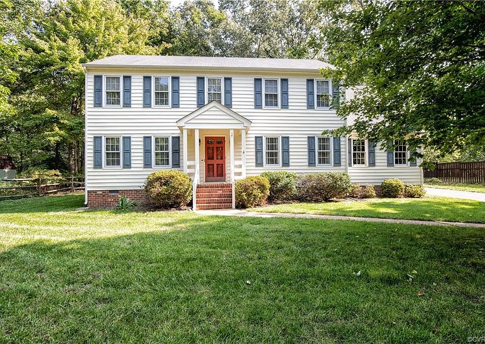 Welcome home to Queensmill North and your 5 bedroom, 2 1/2 bath home! This tidy central Midlothian property includes a 1st level eat in kitchen with bay window open to the family room that includes a wood burning fireplace and garage and deck access. Entertain or relax on the rear deck overlooking the semi-private partially fenced back yard with detached shed! Formal living room and dining room with beautifully finished hardwood floors! Master bedroom with full bathroom and walk in closet, 4 additional bedrooms, a hall bathroom, laundry and central hall with hardwood floor complete the 2nd level. Walk up attic access for extra storage! Exterior vinyl siding, paved driveway with ample parking, rear entry garage with pedestrian door! Neighborhood central is the Queensmill Pool and perfect for summer friends and memory making! Award winning Queensmill Quacker swim team, playground, basketball courts! Neighborhood connector trail is a minute away at the street entry and easy access to the Midlothian Mine Trails system and close to the local workout facilities! Shopping and dining within minutes and easy commutes in all directions via Route 288 or Powhite Parkway! Midlothian schools!