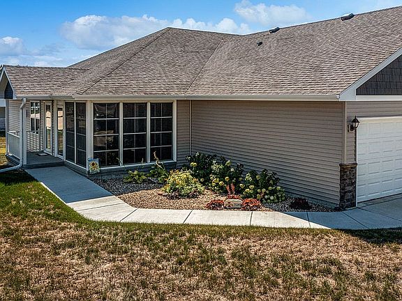 This side by side Hamptom floor plan, located in the Crescent View development of the NE side of Cedar Rapids, has plenty to offer. The main level has carpet and tile floors, vaulted ceiling, and features a fireplace. Also on the main level are 2 bedrooms, 2 full baths and laundry. The kitchen features vinyl floors, laminate counters, stainless steel appliances and breakfast bar. Appliances stay with the home. The master bedroom is located on the main level and features carpet floors, conventional ceiling and walk-in closet. The attached master bath includes vinyl floors, resin counters and one piece shower w/sliding door. The unfinished lower level provides room for future expansion (plumbed for a bathroom). Outside you'll find a three seasons porch overlooking the yard.