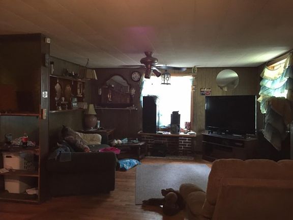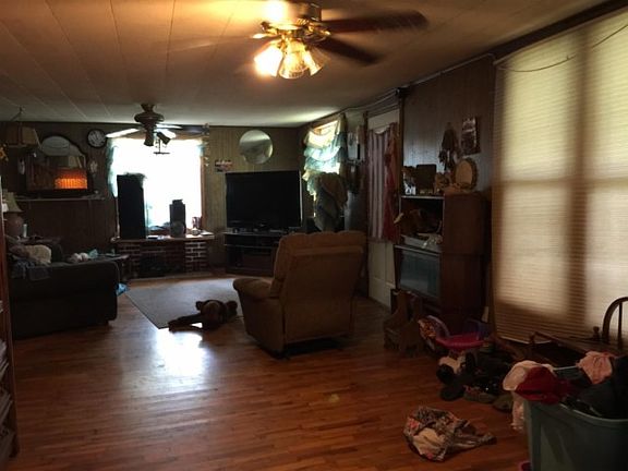 1.7 acres in town, 3 bedrooms, living room, spacious kitchen, Large enclosed porch, fenced yard, and detached 2 car garage.
