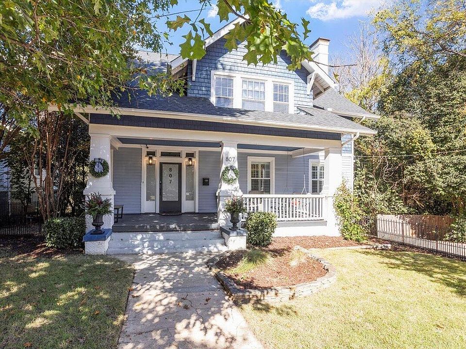 Welcome to 807 East Edenton Street — A Timeless Raleigh Treasure Where History Meets Modern Sophistication. Nestled in the storybook Oakwood Community, one of Downtown Raleigh's most beloved and architecturally rich enclaves, this extraordinary 6-bedroom, 4-bath Craftsman bungalow invites you to experience a rare blend of heritage and heart. Built in 1925 and gracefully reimagined for contemporary living, this home stands as a testament to the enduring beauty of the Craftsman era — a symphony of craftsmanship, character, and comfort. From the moment you step onto the wide, welcoming front porch framed by classic tapered columns, you'll feel the embrace of a bygone era — where neighbors greet each other by name, and the scent of magnolia drifts through tree-lined streets. Inside, original hardwood floors gleam beneath soft natural light, guiding you through rooms adorned with intricate moldings and architectural details that whisper stories of a century past. Every corner reflects both artistry and intention, with modern upgrades woven seamlessly into its historic fabric. Two fully equipped, newly renovated kitchens — complemented by a third kitchenette area in the second floor laundry room — offer unrivaled flexibility, ideal for multigenerational living, extended guests, or lucrative rental potential. Each level enjoys its own laundry area, thoughtful layout, and modern comforts such as new tile flooring, a recently installed roof (2021), and three HVAC systems (one for every level; 2021, 2023, and 2020) for energy-efficient climate control. Enjoy endless hot water with a high-efficiency tankless water heater (2020). The finished basement level transforms function into refinement — an independent suite with sophistication and soul, complete with a private patio and ground-level entrance for easy access from the parking area. Perfect for extra income or a private oasis apart from the main living areas. Meanwhile, the upper levels provide an abundance of space for family gatherings, quiet retreats, or elegant entertaining. Step outside to the private backyard — a lush urban sanctuary framed by mature trees and gentle breezes. The expansive deck invites al fresco dining beneath the stars, while the front porch is perfect for morning coffee or evening wine as the city hums softly in the distance. With ample off-street parking and an oversized lot — a rarity in downtown Raleigh — this property offers both luxury and practicality in equal measure. Perfectly positioned just moments from the city's finest dining, art galleries, and cultural landmarks, this residence captures the very essence of Oakwood's charm: the intimacy of a small-town community nestled within the vibrant pulse of the capital city. A century of history, redefined for modern life — this is more than a home; it's a legacy waiting to be lived.