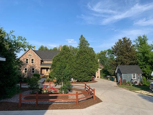 Welcome to Vintage Acres! Your own botanical garden & 5-acre hobby farm. Historic stone farmhouse w/ 4-bedrooms, 2-baths & attached 2-car heated garage. Hardwood floors /woodwork, natural fireplace. Kitchen w/ original pantry & French La Cornue stove. Exterior includes a terraced, irrigated vegetable/herb garden, orchard, flowerbeds, nature trails & 3 firepits. 4-car heated garage w/ connected shop & guesthouse. Property includes shooting range, two ponds-one for swimming w/ beach & cottage stocked for fishing, small pond has waterfall made from a 1949 Dodge. 4-car garage w/ in-floor heat/AC & a 500 ft2 heated workshop. Originally a dairy farm, the property includes 2 barns, chicken coops, milk house, smokehouse, blacksmith shop-upper level including an open-air deck & original outhouse.