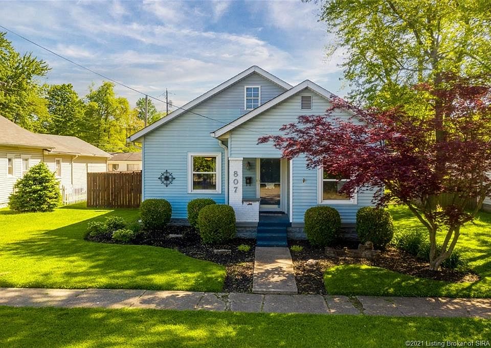Adorable cottage in the heart of Sellersburg, close to the Little League Park and I-265 expressway. Covered front porch , 2 bedrooms and 2 full baths with an open feel. This cutest loft attic area! Newly renovated with all wood floors, kitchen cabinets, stainless steel appliances, gas range, butcher block counter-tops. Washer and dryer remain. Ceiling fans, doggie door, new windows throughout, new gutters with gutter guard. The 2 story garage is a mechanics dream, with I-beam construction and 3 overhead garage doors. Privacy fence in backyard includes a spacious deck and patio with plenty of space for entertaining and a nice size garden. schedule your showing today. sq ft is approximate if critical buyers should verify.