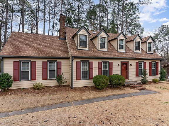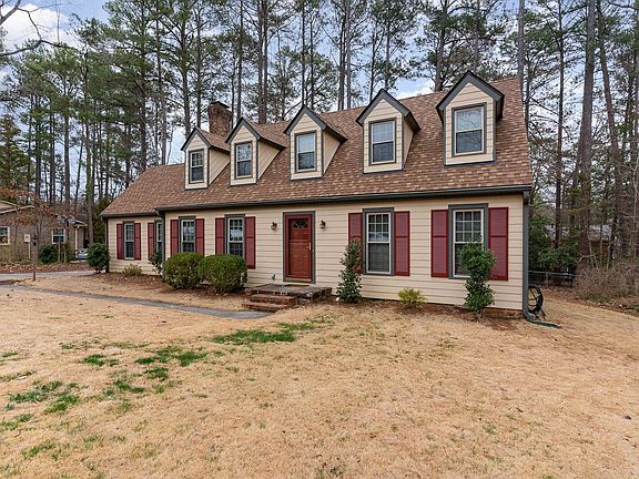 Adorable Cape Code in Chapel Hill features 4 bedrooms & 2 full baths. Entry foyer leads to formal living and dining room. Kitchen is eat in with spacious pantry. Den off kitchen with built in shelves & wood burning brick fireplace. One bedroom and a full bath downstairs. Upstairs features a spacious bedroom with walk in closet that could be the master. A smaller bedroom can be office or study. Last bedroom up has door to bonus with more built ins. Full bath up with dual sinks. Backyard features deck, storage room, small driving range and fenced yard.