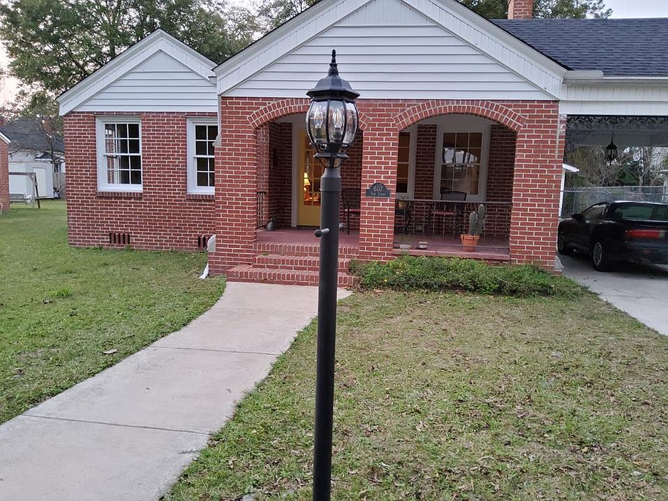 Want a solid, well built red brick home that needs a few finishing touches to complete a total overhaul of the home started by the current owner? If yes, this is it! Expensive things have been done! Updates completed in 2021 include a new 30-year shingle roof on house & garage, all outside paint on house, a new 6-year water heater, updated 200 amp electrical service to whole house which includes smoke detectors and fault surge protection (passed inspection on 10-5-21), and a new HVAC 2.5 ton Seer Heat pump split system (condenser, air handler, thermostat, and duct work). House is approximately 1222 square feet, has 2 bedrooms, a separate living room & dining room, a kitchen, a bath, a laundry room, a front porch, and an attached carport. In the back, there is a detached 2-car garage/workshop and a fenced backyard. Close to shopping, doctors, hospital, everything. Electric & water are both on. Have a recent clear termite inspection report.