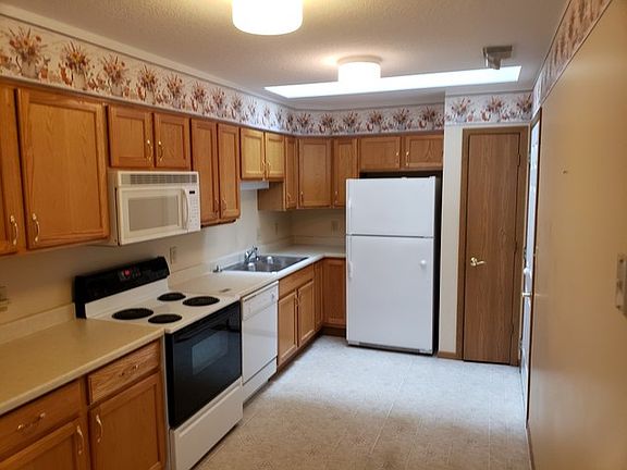 Easy living cottage acres! 55 and over community. Kitchen has skylight, oak cabinets, appliances include stove, fridge, dishwasher, microwave, washer, and dryer. 10x12 bedroom has slider to patio. Master bathroom has walk in shower. 8x9 patio. Attached garage. HOA $218 includes lawn care, snow removal and outside maintenance.