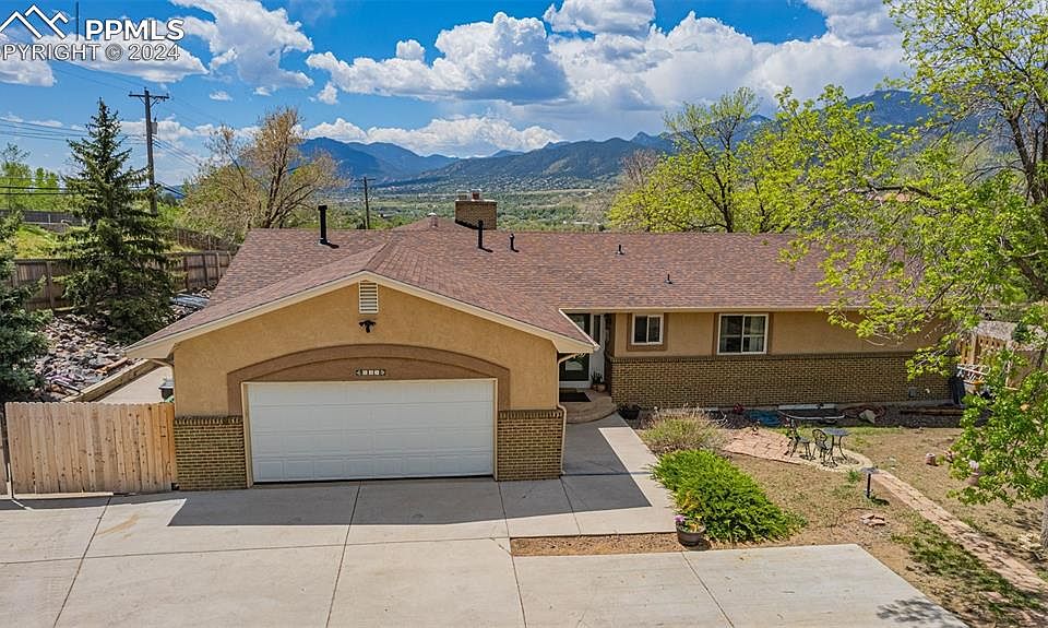 Private resort-style estate, located on mesa adjacent to Garden of the Gods. Situated on 1.3 acres, this property provides soaring, unobstructed views of Garden of the Gods to Cheyenne Mountain! Pikes Peak is the focal point of this hidden west side jewel! Spacious main level living with 3 and 4 stage crown molding throughout, with 2 living rooms each having French doors open to the extensive composite deck that overlooks the in ground swimming pool! 2 master suites on the main level. Perfect for entertaining! Chef’s kitchen with cherry oak cabinets, High end wolf gas stove and silent wolf exhaust system, 6 foot of Sub-Zero refrigeration, Bosch dishwasher and Zline convection microwave, slab granite counter tops welcomes family and guests. Large laundry on main floor with custom built pantry. Lower level has 4 bedrooms 2.5 bathrooms with kitchenette, massive open family room make this a cheerful, cozy place to gather. Office w/ private bath could double as a guestroom with second laundry hookups. Energy efficient windows throughout, newer stucco, 3 new central air and heating systems cover main level and lower level, energy efficient radiant in floor heat throughout, new 50 year impact resistant architectural shingle roof, 2-car garage, In deck hot tub overlooking the swimming pool and European flower gardens. Uncomplicated accesses from private alleyway behind the home, in addition to main driveway provide convenient access. Come home to the serenity and comfort of this secluded refuge!
