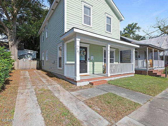 This 3 bedroom, 2.5 bathroom like-new home by Plantation Builders has all the charm and appeal that you expect from downtown Wilmington living without all the maintenance issues of ~100 year old homes. Being centrally located in downtown Wilmington with being only a few blocks from CFCC, 1/2 mile to Front Street, and close to the Soda Pop District. An inviting front porch and gorgeous hardwood floors welcome you to the open-concept living room and kitchen. A half bathroom downstairs and two full bathrooms upstairs makes it a breeze to house guests. Natural light is abundant throughout the entire home. Other features of the home include beautiful wainscotting and crown molding downstairs, a walk-in closet in the master bedroom, a fenced-in backyard, an outdoor shed, and off-street parking. A new hot water heater was installed in 2023. A $4000 buyer's agent is being offered for an accepted contract by March 15, 2023. Schedule your showing today of this downtown gem!