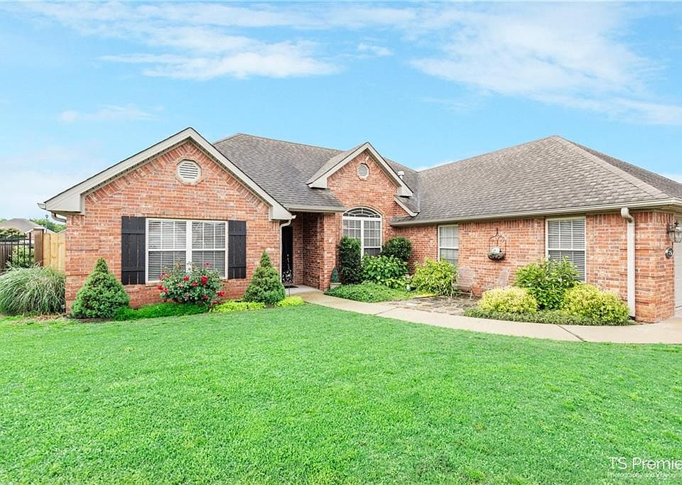 Better than new! Beautiful 3 Bedroom 2-1/2 bath home with formal dining. Amenities include: open split floor plan , formal dining, eat-in kitchen with breakfast bar, custom oak cabinets, under cabinet lighting, hall pantry, custom trim work, trey ceilings in master bedroom, living room and formal dining, fireplace with gas logs, luxury wood laminate flooring. The Master suite has a large walk-in closet , walk-in shower, 2 sinks and a whirlpool tub. Great outdoor living space with the covered back patio for entertaining family and friends. Custom built storage building, wood privacy fence with wrought iron gates and beautiful landscaping. The HVAC was replaced four years ago; water heater replaced three years ago, flooring 2013, dishwasher 2015, garbage disposal 2015. Great location! Close to schools, shopping, Public Library and within walking distance to Prairie Grove Water park. Come see all this home has to offer. New Roof and Gutters 2020