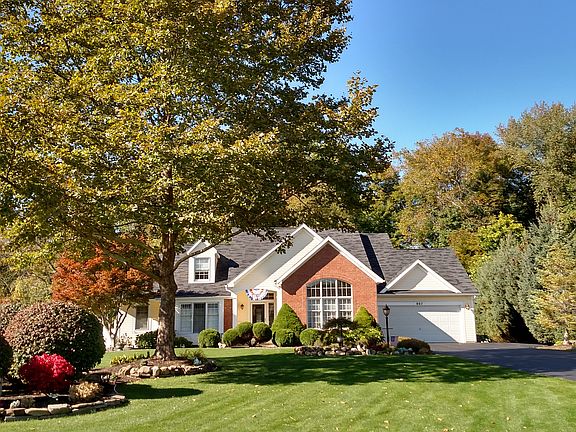 Open floor plan, 2 story ceiling in family room, cathedral ceiling in dining and living room. Hardwoods, ceramic tiles and newer carpets. Private back yard backs up to woods. Large custom built shed with side porch. In-ground swimming pool with large patio and deck with Gazebo. Large enclosed porch/ 3 season room. Long driveway with extended parking at garage. Extensive landscaping with mature trees. Central Air, Gas Fireplace, outdoor landscape lighting. The large kitchen island serves as a buffet and for dining.