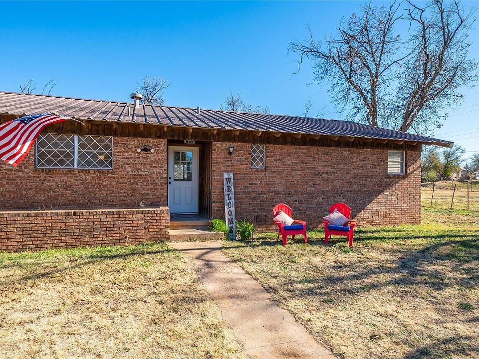 Come enjoy small town living in this three bedroom brick home. Recently renovated with new LVP flooring and fresh interior paint. Located on a large corner lot with room for the horses! This rustic open living space features knotty pine walls and extra built-ins. The eat-in kitchen opens to the dining area and extends out to the covered back patio. The backyard has a covered patio and a privacy fenced yard. The extra lot will serve great for RV and boat storage or for you next 4-H or FFA project. The Central heat and air was replaced in 2022 and the metal roof will help reduce your home owners insurance. This property also has a water well. Hurry… Don’t miss this one!