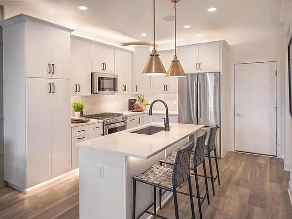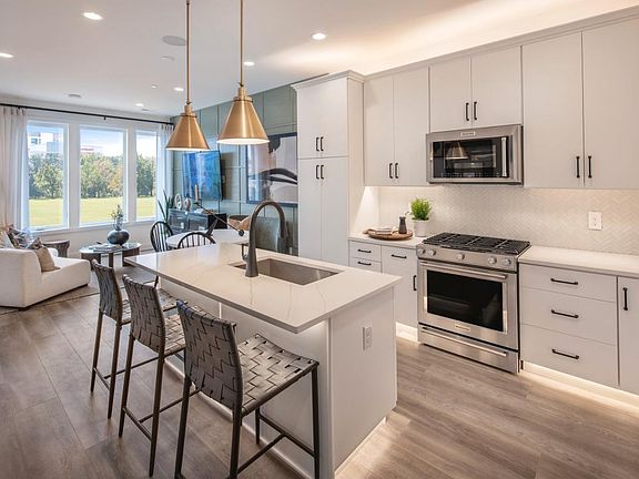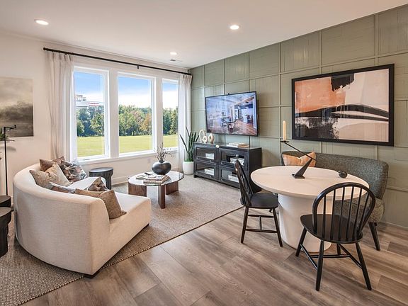 The Bratton's welcoming covered porch and foyer reveal the expansive open-concept living room and casual dining area. The well-designed kitchen is complete with a large center island with breakfast bar, plenty of counter and cabinet space, and sizable pantry. The sophisticated primary bedroom suite is highlighted by a private covered deck, enormous walk-in closet, and spa-like primary bath with dual-sink vanity, luxe shower with seat, and linen storage. Secondary bedrooms feature roomy closets and shared hall bath with dual-sink vanity. Additional highlights include a convenient powder room on the living level, centrally located laundry on the bedroom level, and additional storage throughout.
