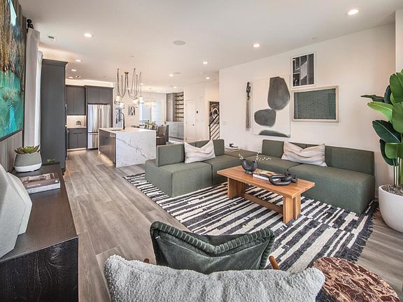 Deluxe urban living. The Wetherill's welcoming covered entry and foyer flow up the inviting stairs to the living level, revealing the spacious great room, casual dining area, and desirable covered deck. The well-equipped kitchen is highlighted by a large center island with breakfast bar, plenty of counter and cabinet space, and roomy walk-in pantry. The lovely primary bedroom suite is enhanced by dual walk-in closets and spa-like primary bath with dual-sink vanity, large luxe shower with seat, and private water closet. Secondary bedrooms feature sizable closets and shared hall bath with dual-sink vanity. Additional highlights include a generous flex room, convenient powder room, centrally located laundry, and additional storage.