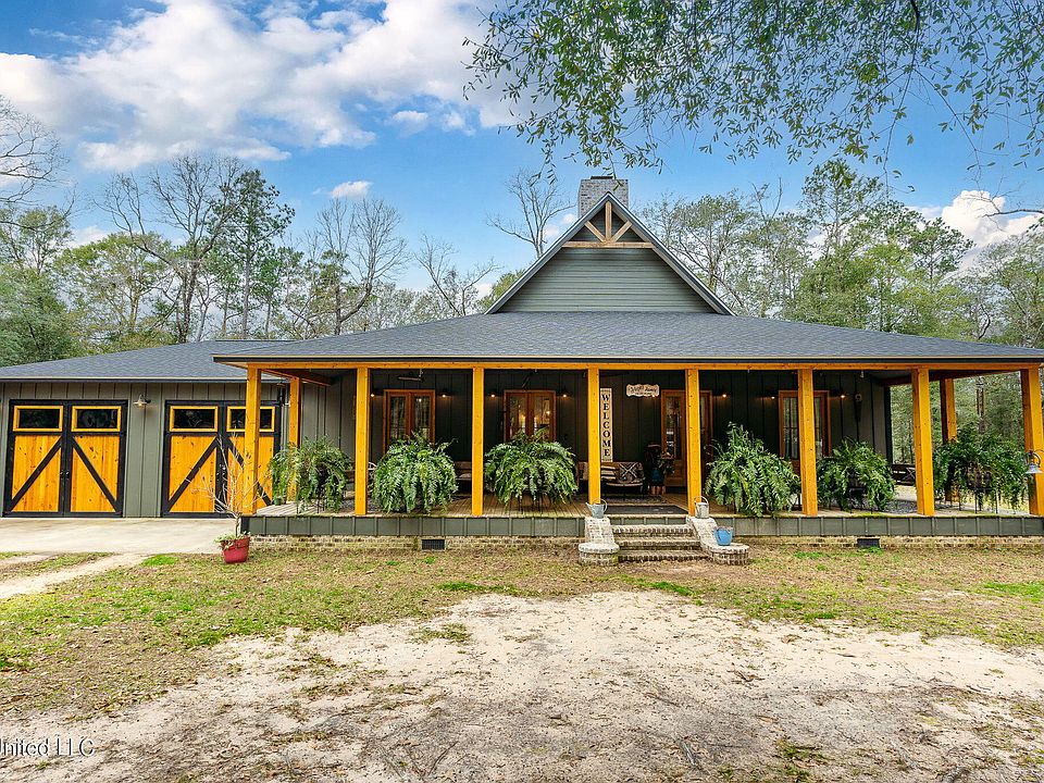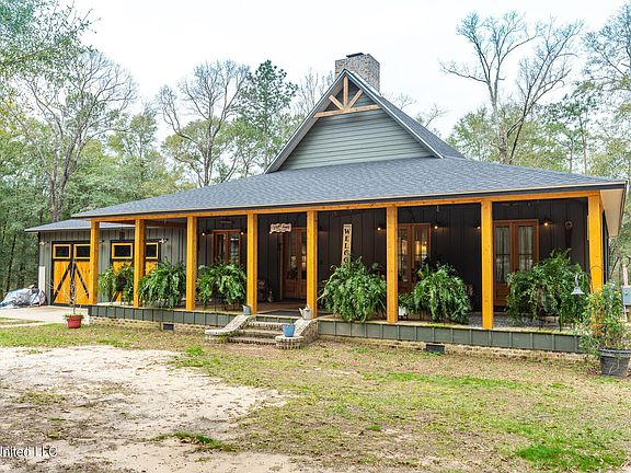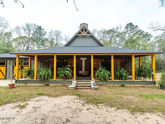 Rare opportunity! Stunning home with 8 wooded acres in the city limits of Lucedale. This custom home was built in 2021 and no details were overlooked. The large front porch extends across the entire home and showcases the four prestigious 8' double panel doors with glass inserts. The rich color of the wood is a great accent to the painted HardiePlank Siding. As you enter the home, the 23' vaulted ceiling with exposed beams catches your attention. As you continue through the open living space, you notice the exotic grain of the acacia wood floors, which are throughout the home. The reclaimed oak countertops are one of the many special features in this kitchen with all matching LG appliances. A few of the other items include custom cabinets, farmhouse sink, built-in refrigerator, walk-in pantry, and a pot filler over the natural gas range. The quartz countertop on the island is a true statement piece. This home has a split floor plan for the bedrooms with each side having its own HVAC unit which feeds into the main living area. The large primary bedroom features a well designed bathroom with 2 separate vanities and a walk-in acrylic shower. Crossing over to the opposite side of the main living area you will find the other 2 bedrooms, mudroom and bathroom. This home is located minutes from downtown Lucedale. If you find yourself wanting to explore the outdoors, there are 8 wooded acres right in your own backyard. Come see what else this property has to offer.
