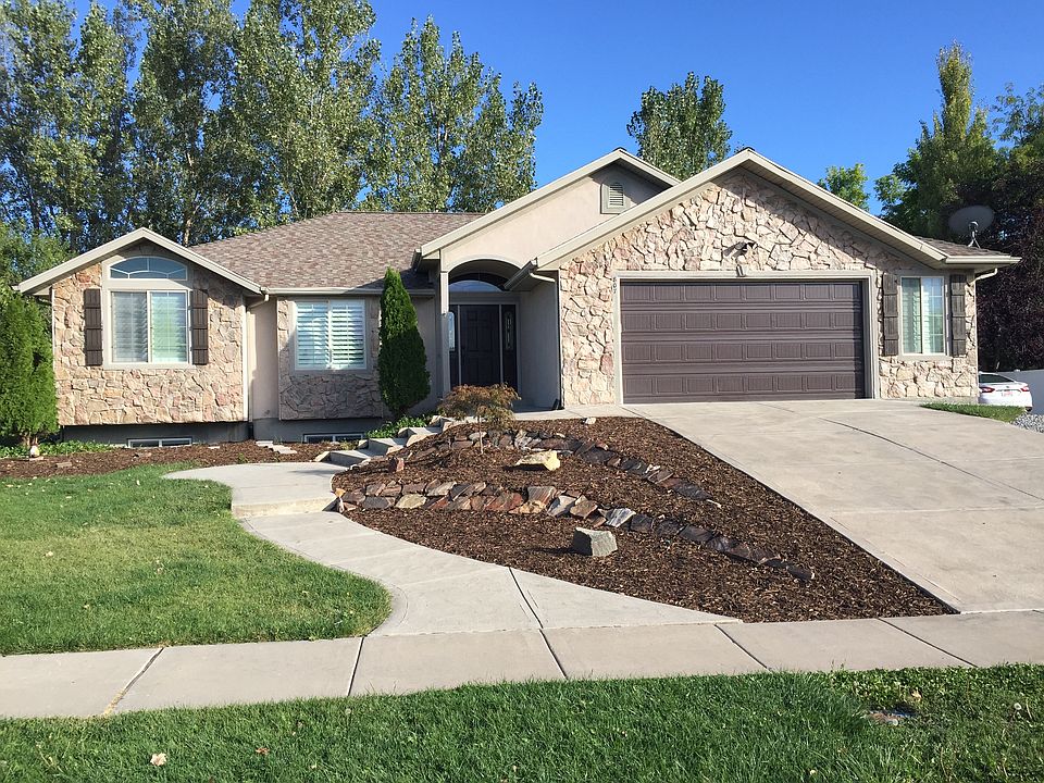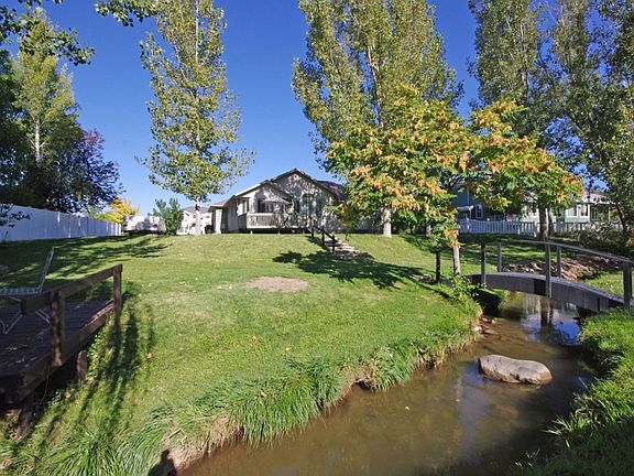 Beautiful, move in ready rambler in amazing neighborhood where pride of ownership is prevalent. Main floor has open floor plan with entryway, formal living room, kitchen with roll out base cabinets, new stove, dishwasher, microwave and disposal. kitchen has walk out on to deck and adjoins family room with cozy fireplace, separate office or den, master bedroom has bay window and large walk in closet, master bath has large jetted tub and separate shower, mud room with lockers and 1/2 bath. Finished Basement with 4 large bedrooms, large family room with children's play nook under stairs, a large bathroom and a combination laundry-project or hobby room. Enjoy this enchanting, park like yard with shared gazebo and beautiful stream running through it. Stream is complete with a personal, foot bridge and fishing dock. Perfect for family, entertaining or just peaceful relaxation. Enjoy the benefit of inexpensive, secondary Weber water to keep this oasis green and lush. Many extras are found in this home: High quality wooden plantation shutters, newly refurbished Electrolux central vacuum with new attachments, a French drain system installed in foundation & basement, drains in window wells and a large suspended area under garage that is perfect for storage. Easy I-15 access. This home with beautiful yard is truly amazing and won't last. Call now for an appt.