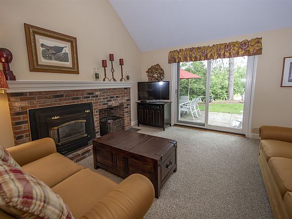 Beautiful, well maintained, fully furnished end unit condo in Fairway Village with views of the Ottauquechee River, as well as the 6th hole of Highland Golf Course. You can walk to Lake Pinneo and the Quechee Club, or instead enjoy the spacious patio space right outside your door. Enjoy the propane fireplace in the living room with views all around to the Vermont scenery. Bedroom on the first floor, with a 3/4 bathroom as well. Granite in the kitchen and both bathrooms - updated carpet and sliding door, with a new hot water heater. Two bedrooms upstairs where you can curl up under the vaulted ceilings and listen to the river babbling, snowflakes falling, or the quietness of the gracious golfers. Come take a look at this beauty. A storage shed (golf cart shed) is included with the sale.