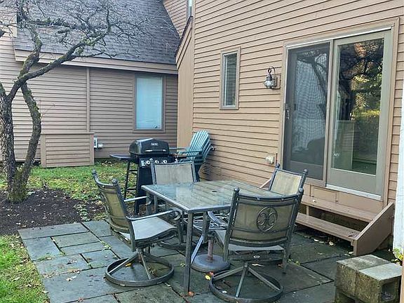 Location within Quechee is ++++. A short golf cart ride to the club, lake, tennis, and golf. This end unit has a bright and open floor plan. A wood burning fireplace, cathedral ceiling, supplemental gas heater. Sliders lead to a very private patio. There is a garage for a golf cart or can be used for storage, One time buy-in fee to condo association is $1,320.00 There is a one time buy-in fee to the Quechee Club of $4000.