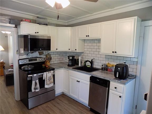 Completely remodeled starter home! Attractive bungalow with LVP flooring, barn door, newer kitchen cabinets and tile backsplash, walk-in closet in main bedroom. Remodel was completed in 2022, including roof, siding and gas furnace. Home is move in ready.