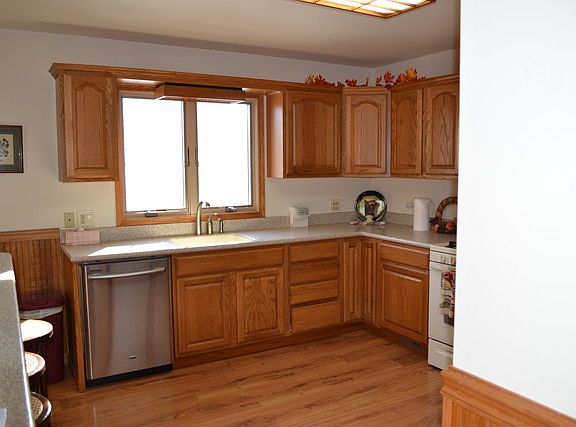 This ranch features many upgrades on the main level including some Pella and Anderson windows, beautifully upgraded kitchen with seamless, solid surface counter tops, upgraded cabinets and awesome breakfast bar! Newer plush carpet in all main level bedrooms and oversized two car garage. Partially finished basement, needs work but has major potential! No Fha.