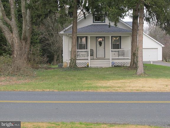 Absolutely Charming Porch Front Cottage on a lovely lot in Fallston. Kitchen, Bathroom, Electric Panel, Siding, Windows, and all updated around 2004 according to previous owners listing. Kitchen can be entered from rear porch so you can easily come in and drop your groceries and it is open to Dining Room with a breakfast bar, and features tall beautiful oak cabinets, stainless appliances, filtered water at large sink. Walk in Pantry where you could put laundry if so desired. Both bedrooms do have closets (not original in 1935). Original wood floors, trim and doors run through out the home, with exception of kitchen and bath having neutral ceramic tile floors. There is large walkup attic that is floored and has windows offers the new home owner great potential to create extra living space, or just extra storage. Unfinished basement reveals the updated piping, and tidy electrical work all well labeled, water treatment system, well tank was installed in 2020 at same time well was brought above ground to meet current codes and seller also had a passing well yield test performed. Septic System was installed in approx. 2009 (records will be in system soon). House features updated windows and architectural shingles, The oversized two garage has electric, is prewired for garage door openers, has pull down stairs to storage and looks to be in fantastic condition. Come take a look, you will surely enjoy the front porch as a place to unwind and gather with friends, or sit on small back porch and overlook the rear yard and pasture beyond it.
