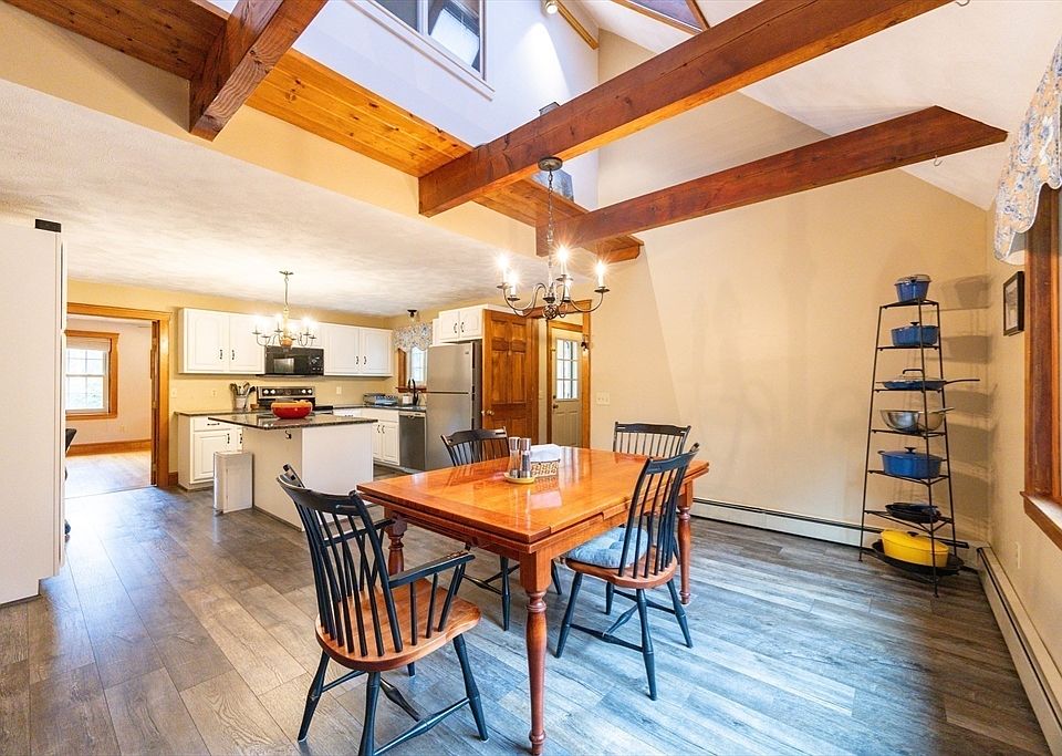 - Features: Skylight, Beamed Ceilings, Flooring - Laminate, Dining Area, Countertops - Stone/Granite/Solid, Countertops - Upgraded, Kitchen Island, Exterior Access, Open Floorplan, Stainless Steel Appliances, Half Vaulted Ceiling(s)