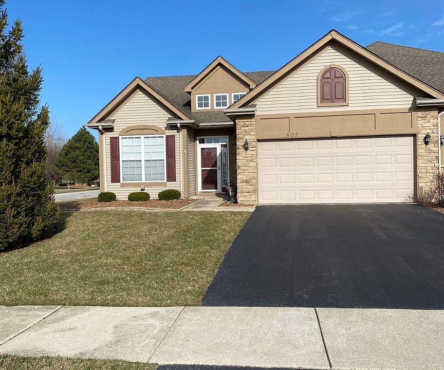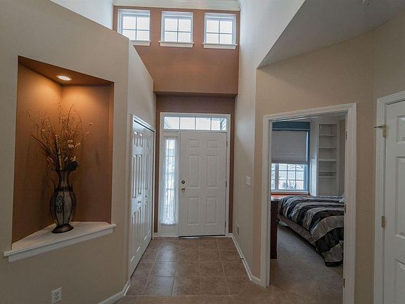 You Can't Beat the View!! Bright, OPEN CONCEPT Maintenance-Free 2 Bedroom, 2 Bath Paired Cottage on SCENIC CORNER LOT. Enjoy the serenity of a Waterfall, Fountain, Ducks on the Pond all from your CUSTOM BRICK PAVER Patio! Impressive Vaulted Entry with 13' ceilings, 9' throughout. Large Great Room (possible LR/DR) w/ Over-sized Windows, Master BR with Large WALK-IN CLOSET features Gorgeous Built-in CUSTOM WOOD ORGANIZER, and Ensuite Bath. 2nd Bedroom has BUILT-IN BOOKSHELVES framing a Large Picture Window and WINDOW SEAT. SUN ROOM has sliding glass doors to step out and enjoy your own park-like setting. NEW CARPET in Master, NEW FURNACE, All CUSTOM BLINDS stay! Laundry off kitchen-Washer/Dryer stay. Dry-walled Garage has heavy duty EPOXY FLOOR. In-ground IRRIGATION SYSTEM. Close to shopping, and major roads. Relax & Enjoy! Association takes care of lawn, sprinkling system, snow removal, exterior maintenance, sealcoating driveway.