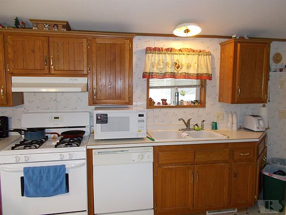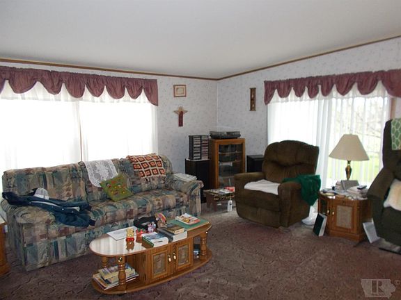 This great home is located in a senior housing park and water, sewer, trash, mowing and snow removal are included in lot rent. This home was built in 2000 and has an open floor plan in kitchen and living room. The wrap around deck has two sliding doors for great views. Washer/dryer, kitchen stove and refrigerator included.