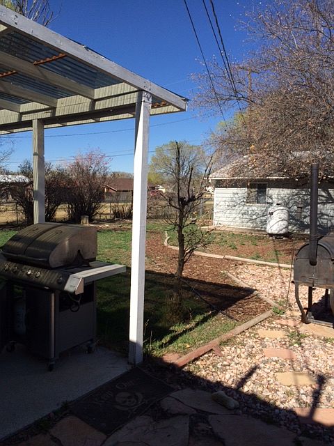 HERE is the house you have been looking for. 2 Bedrooms upstairs with a full Bathroom. Nice sized living area with an extra room that could be used as an office, den or music room. This house has been updated in the past couple of years with a new stainless steel Bosch dishwasher, refrigerator. Beautiful laminate floors. Then downstairs there is a basement with 3 bedrooms and a 3/4 bath and an extra room for an office. Also a Family room and laundry. There is an abundance of storage in the home. Now for the outside. Lets start with the new metal roof, large fenced back yard with 2 storage sheds. 30' x 24' 3 room Guest/Studio with 1 car garage does not have plumbing (but this is very possible) it does have electric and a Non-vented Propane Heater. This property has alley access and is right next to the greenbelt so there is nobody on the left side. This is nice for family picnics or games. The backyard is very private and quite