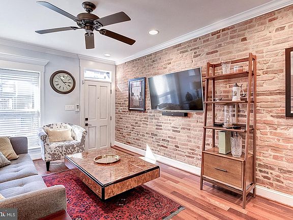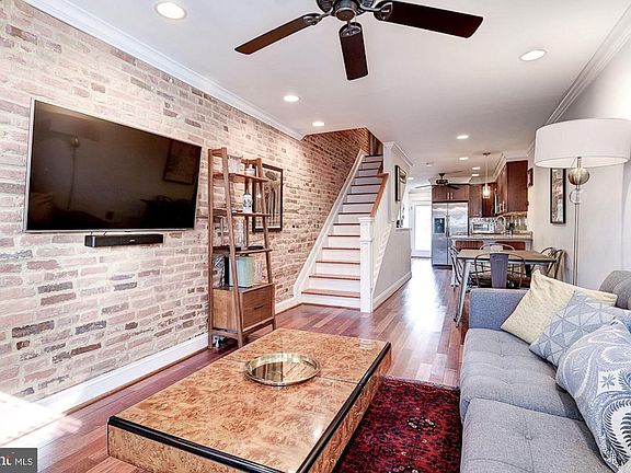 You won't be able to resist this fully remodeled Canton townhome located close to everything that Baltimore has to offer! The gorgeous living room hosts an amazing exposed brick wall, crown molding and gleaming hardwood floors. An inviting dining area is perfect for entertaining. The sleek eat-in kitchen boasts a breakfast bar, granite counters, stainless appliances, gas cooking, chic pendant lighting, tile backsplash and under cabinet lighting. There is a conveniently located main level powder room and mudroom. On the upper level is the beautiful primary bedroom with bright windows and en-suite bath with modern walk-in shower. There are two additional generously sized bedrooms each with their own unique charm and a second full bath. A spectacular rooftop deck has 360 views of both the Harbor and city skyline. There is also an audio system throughout the entire home and roof deck! Easy Access- Off Street parking is available and a must-have in Canton! Parking pad, Roof Deck, New HVAC, Prime location, Quiet Street. Former MK Building Character remodel with over a year left on the CHAP