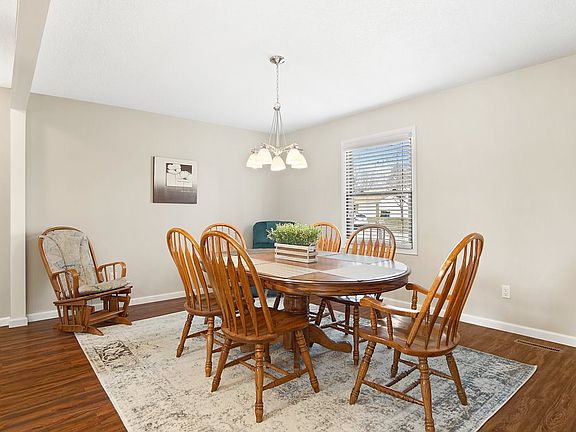 Great 2 story home with inground swimming pool! Lots of room for entertaining inside and out! Wide drive for lots of parking! Many recent updates: Open concept, enlarged & remodeled kitchen with white cabinets and ceramic tile backsplash, island adds eat-in area; vinyl laminate floor throughout entire main level; interior has neutral colors and was painted recently as well as outside painted and shutters. Large dining area opens into kitchen and family room. Sliding doors open to patio area with swimming pool. Back yard has wood fence surrounding pool area and includes outbuilding for equipment storage. Pool equipment stays! The family room has a gas log fireplace and doors, screen, and tools stay. 1/2 bath and laundry room with cabinets overhead completes the main level. Two car garage includes some cabinets and workbench area. Second story master ensuite with walk-in closet and remodeled bathroom with shower adds convenience and privacy. 2 additional large bedrooms and another remodeled full bathroom provides lots of space and room for everyone!