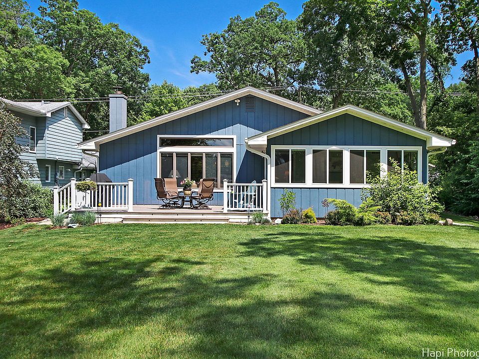 Experience unparalleled riverside living in this reimagined ranch home on the shores of the Fox River. This stunning property promises to exceed all expectations with it's modern, fully renovated kitchen featuring a breakfast bar, granite countertops, stainless steel appliances, and ample cabinetry and counter space, including a generous pantry. The vaulted living room, accented by a beautiful stone fireplace, offers tranquil river views, making it a spot for relaxation. The elegant dining room, surrounded by windows, provides beautiful views of the .71 acre yard and river, and grants access to the maintenance free-deck, perfect for outdoor entertaining. The spacious master bedroom provides a peaceful retreat. The first luxurious bathroom boasts leathered granite countertops and a walk in shower. The home includes a second generously sized bedroom and a second full bath with a tub. A convenient laundry/mud room off the garage keeps things clean and organized. Outside a lush deep yard leads to the riverbank where you'll find your private pier. Two sheds, both equipped with power, provide ample space for all our extras. Completing this exceptional property is a two-car garage. This home is truly a haven for those seeking tranquility and modern comforts by the water.