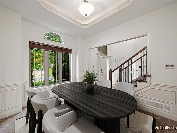 This stunning two-story home with a finished walkout basement offers the perfect blend of elegance and functionality. The main floor features beautiful hardwood flooring throughout the entryway and eat-in kitchen, creating a warm and inviting atmosphere. The well-equipped kitchen boasts ample cabinetry, a walk-in pantry, a large island, a tile backsplash, and solid countertops, making it a chef's dream. The living room is bathed in natural light from numerous large windows and includes a cozy fireplace, all overlooking a private backyard. A formal dining room and a convenient half bathroom complete the main floor. Upstairs, the spacious primary suite offers a sitting area and an ensuite bathroom with double vanities, a luxurious tub, and a large walk-in shower. Three additional bedrooms, a full bathroom, and a laundry room are also located on this level. The walkout basement is perfect for entertaining, featuring a recreation room with a bar, a full bathroom, and an additional bedroom. Outdoor gatherings are a delight with a large covered deck that overlooks a serene green space. An oversized three-car garage provides ample storage, and new paint and carpet throughout ensure that this home is move-in ready.