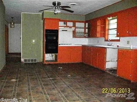 This house is located on the last street on the west side of Rector. It has good curb appeal and nice size rooms, but the inside nedds TLC. There appears to be hardwood floors under the carpet. The property is to be sold "AS IS".