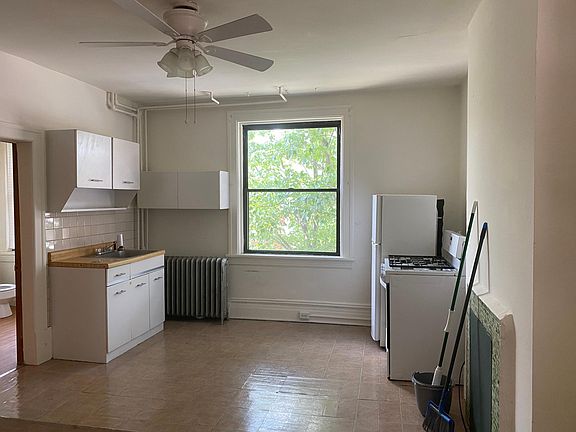 2nd Floor of a 3 floor apartment building. There is coin laundry in the basement of the building. There is parking in the back of the building, it is first come, first served. Rent is $750/mo - Heat, water and trash are included. No smoking allowed No pets allowed