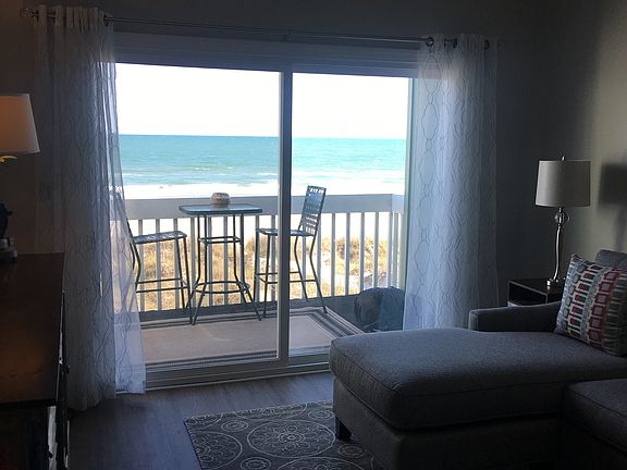 Recently renovated, delightfully decorated direct oceanfront condo offering unobstructed views up and down the coastline! This immaculate, turnkey unit is being offered furnished and features luxury vinyl plank flooring throughout, all new kitchen cabinets & appliances, granite countertops and tile backsplash. The great room comes equipped with a new glass slider, vaulted ceilings with skylights that offer an abundance of natural light and all new furnishings including a 55??? flat-screen TV. Both bathrooms boast new vanities and new toilets while new foam mattresses have been added to both beds. The oceanfront master bedroom also has a new window and a new door granting access to the balcony. Other notable features: laundry room, storage locker on front porch. This unit literally has it all, and it???s located just a few blocks south of Main Street in North Myrtle Beach. Schedule your showing today!