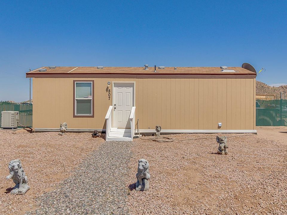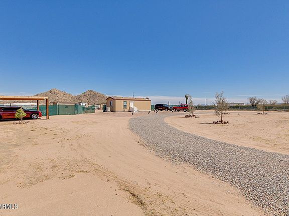 This new 2020-built Cavco home is just right for getting out of the city and enjoy the quiet starry nights of Maricopa. 1 acre of horse property that is completely fenced. Paved roads all the way to the property, and the front yard has a circular gravel driveway. There is also a storage shed in the back. Gorgeous mountain views, and the lots on either side are vacant for added privacy. Currently hauled water but the water company is in the process of adding water lines to the neighborhood.
