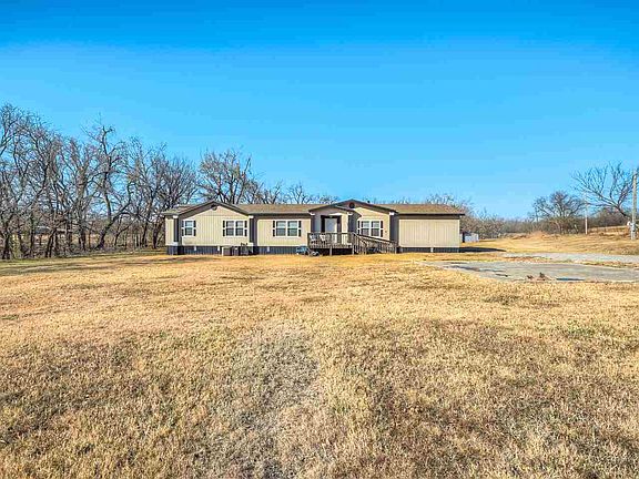 Country living at its finest! This property is the perfect opportunity to enjoy the peace and quiet of the country, all while being located not far outside of city limits. This 4 bed, 2 bath doublewide is complete with a propane fireplace, built-in office space, and an oversized walk-in closet with an island. This home is located on a spacious 34.86 acres (MOL) with 2 wells. It is conveniently located right off of Hwy 7 for easy access to Lawton/Ft. Sill, and surrounding towns. This property is perfect for camping, bonfires, and admiring the sunset fall behind the Wichita Mountains. Call today for a private showing!