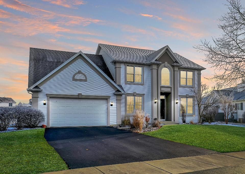 Don't miss the opportunity to own this beautiful custom built John Hall home! Stately and pristine from the curb on a premium lot with stunning water views from your expansive back deck. Enjoy an open and airy main floor complete with formal dining and living rooms, well appointed kitchen, and a great room with soaring double high windows, custom millwork throughout, a beautiful fireplace, and a gorgeous staircase. Hardwood on main level. Upstairs boasts a fully appointed primary suite with french doors and 2 more large bedrooms. There is room to create your own space in the full unfinished basement. Basement has 9 ft. ceilings and is plumbed for a bath. Even a dog run tucked in the back for your furry friend! Recent updates include: 9 ft. contractor grade, commercial sized garage door with a heated tandem 3.5 car garage. Newer driveway (2 years old), newer roof, deck, AC, furnace, hot water heater, dryvit, (3years old). Water softener (5 years old), Minutes from METRA, I-88 interchange, elementary school, library, shopping and dining. This one won't last!