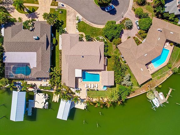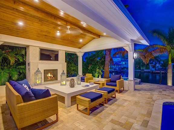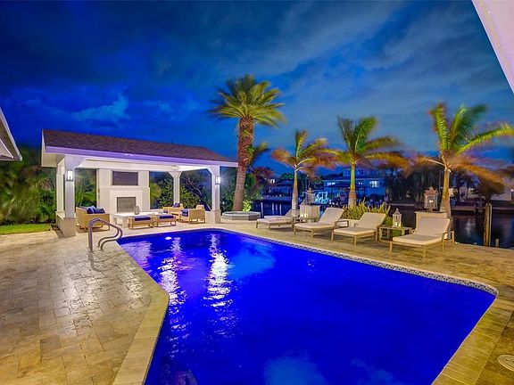 Waterfront living at it's best in desirable Island Estates! This gorgeous 3 bedroom, 3 bath waterfront home truly has it all! Boat lovers this is your dream home! 2 minutes to open water! Enjoy 100' of waterefront living. Slip 1 will accommodate up to 46' boat with 20' beam. Sailboats welcomed. There is also a covered slip with 10Klb lift! Deep water makes this a perfect waterfront playground! Dock is complete with both electric and water supply. Your sure to enjoy the composite decking too. This tropical oasis has a beautiful saltwater pool with travertine pavers and a beautiful heated waterfront spa. A must see is the 17x13 covered gazebo complete with built in gas fireplace, LED lights, ceiling fan, flat screen TV and cozy outdoor living furniture. Outdoor grill area complete with refrigerator & boaters will enjoy commerical ice machine. This home has seating on the lower dock area & is the perfect place for family & friends to gather. Saving the best for last is the indoor living space. Large open floor plan with must see water views. Polished terrazzo flooring, retractable patio slider off kitchen. Custom gourmet kitchen features white cabinets, oversized island with plenty of seating, dry bar with wine cooler, stainless steel appliances and stone countertops. You'll say wow when you see your spacious master bedroom with water view, double sink vanity, glass enclosed shower, oversized soaking tub and custom built master closet. The second waterfront master suite also has direct access to pool. This home has been fully updated to include impact doors and windows. Luxury furniture throughout this home. 2 car garage has plenty of storage for your water & beach toys.
