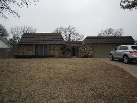 Something for Everyone!! Two Master Suites, Large Storm Cellar and In-Ground Pool. The Metal Shake Shingle Roof is appx 4 years old. It has a wonderful gated Courtyard entry for privacy. The back yard perfect for entertaining with In-Ground Pool w/ Hot Tub area, Pool House w/ 1/2 Bath and Equipment Storage and Large Covered Patio. Storm Cellar with electricity for Oklahoma spring storms. The Spacious living room has 14' ceilings, opens to Wet Bar and Wood Burning FP. The Formal Dining area included in the Great Room. Kitchen has Breakfast Room and lots of Storage. There are 2 Master Suites with a M-I-L design. Both have ample room for sitting areas and adjoining 3/4 baths. Hall Full Bath with soaking tub for 3rd Bedroom and there is a 1/2 bath for company. Make this your own with a little paint and special touches.